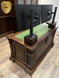 Najwyższa jakość drewna z którego wykonujemy nasze meble pozwala stworzyć trwałe i ekskluzywne meble gabinetowe. Staranne wykończenie i szeroka gama kolorystyczna upiększy Twój biznesowy pokój nadając mu niepowtarzalnego charakteru i klasy. Pokój biurowy to miejsce gdzie spędza się często większość dnia, warto więc by było komfortowe i miłe dla oka. Rzeźbione biurka, witryny, gabloty, biblioteki, regały na książki, komody i wiele innych elementów biura znajdziecie w naszej galerii.