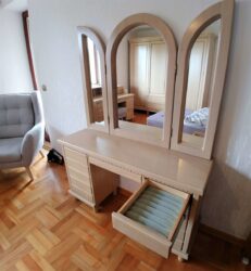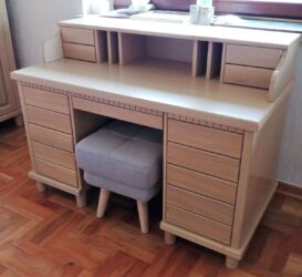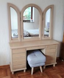 Wyposażając sypialnię nie możemy zapomnieć o ekskluzywnej toaletce z drewna. Wyprodukowana z wysokiej jakości surowców i pięknym stylu będzie cieszyć oczy przez długie lata. Toaletka to bardzo dobry wybór przy mieszkaniach z jedną łazienką, gdzie kobiety spokojnie będą mogły zająć się sobą. Możliwość wykonania ruchomych luster i oświetlenia zapewnia maksymalną widoczność twarzy. Dzięki indywidualnym zamówieniom, sama możesz zaprojektować swoją toaletkę. Przejdź do galerii zdjęć i obejrzyj wszystkie modele toaletek.